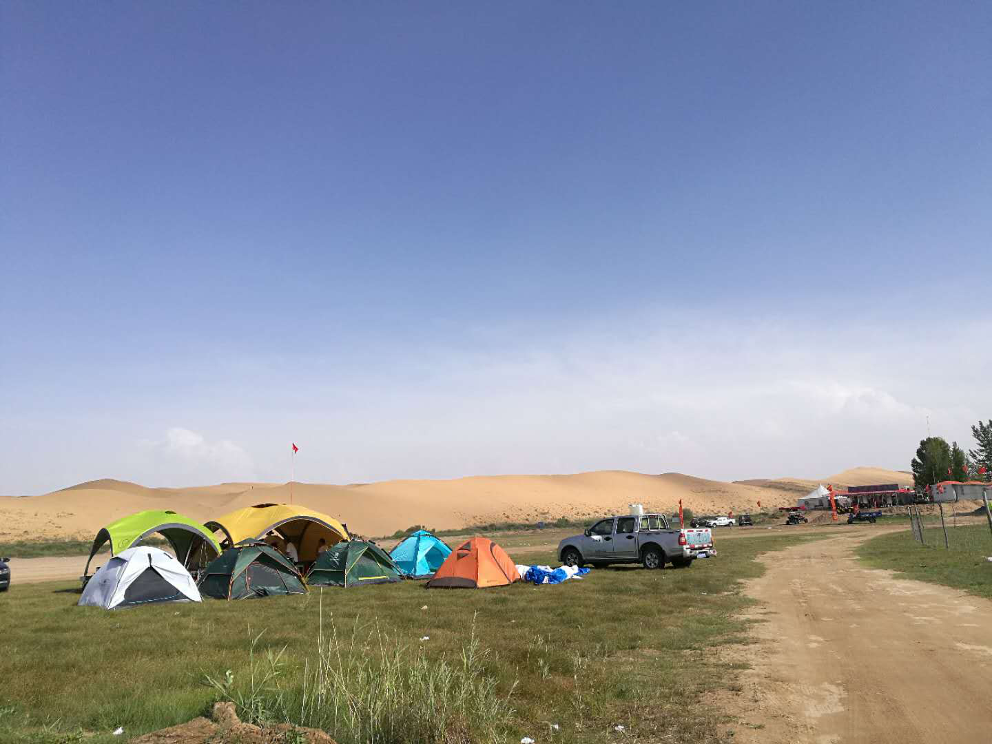 早八時所有參訓人員集結完畢上車出發(fā),晚六時抵達位于內(nèi)蒙古達拉特旗的庫布齊沙漠營地,開始了我們四天三晚的沙漠之旅。