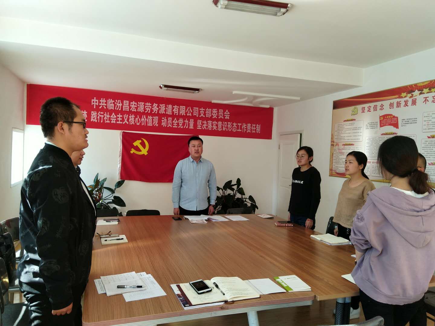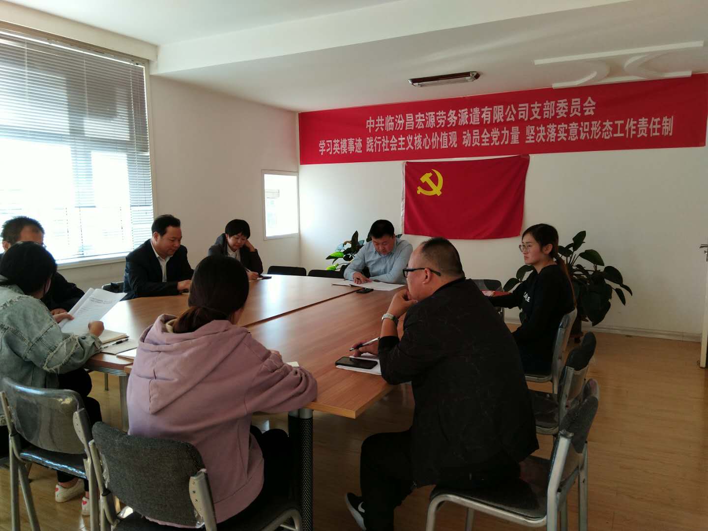 2018年10月10日在臨汾昌宏源勞務(wù)派遣有限公司黨支部三樓黨支部辦公室進(jìn)行了中共臨汾市堯都區(qū)非公有制經(jīng)濟(jì)組織委員會(huì)文件關(guān)于組織開展10月份主題黨日活動(dòng)的學(xué)習(xí)。