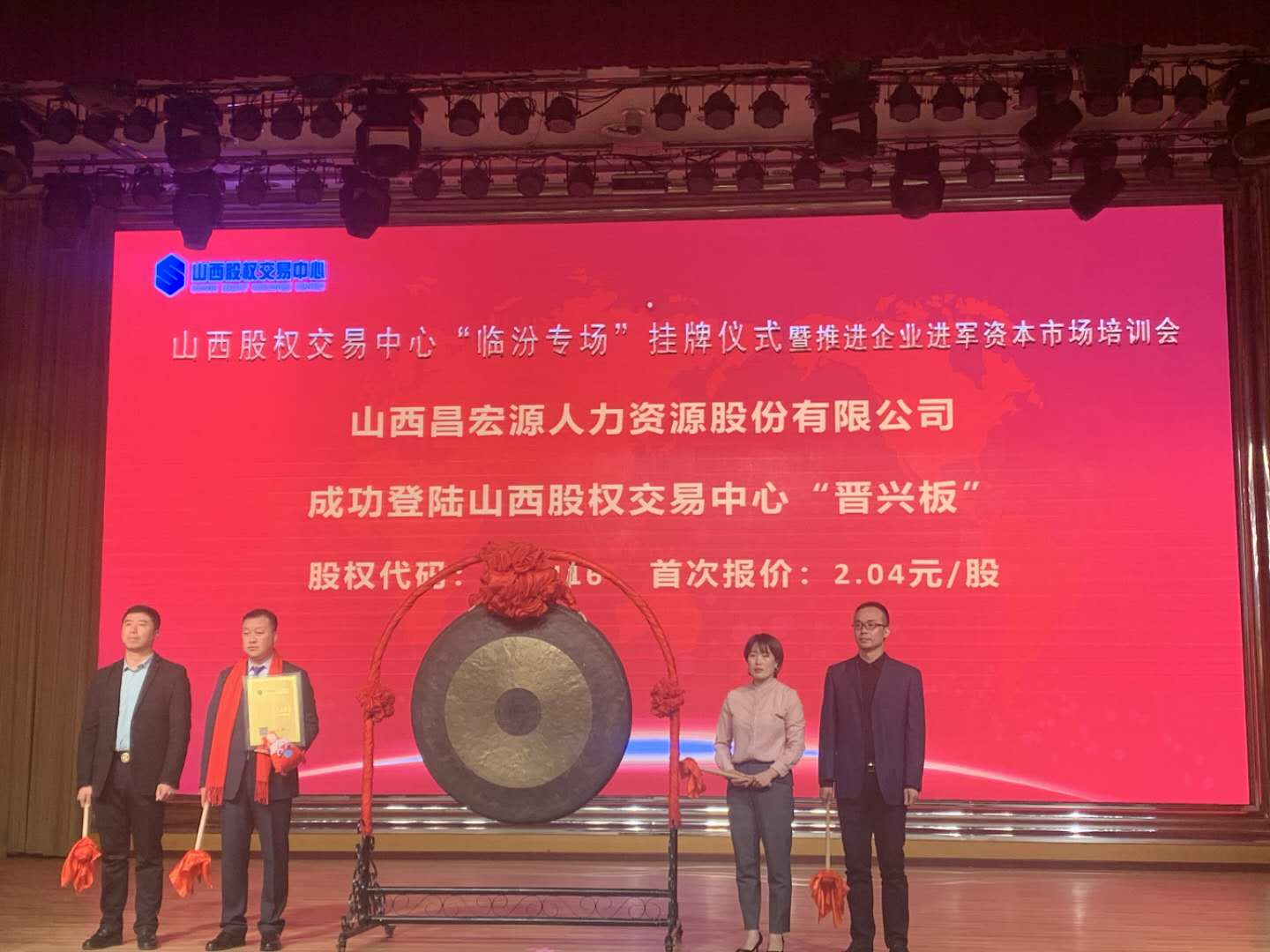 山西昌宏源人力資源股份有限公司成功登陸山西股權(quán)交易中心“晉興板”