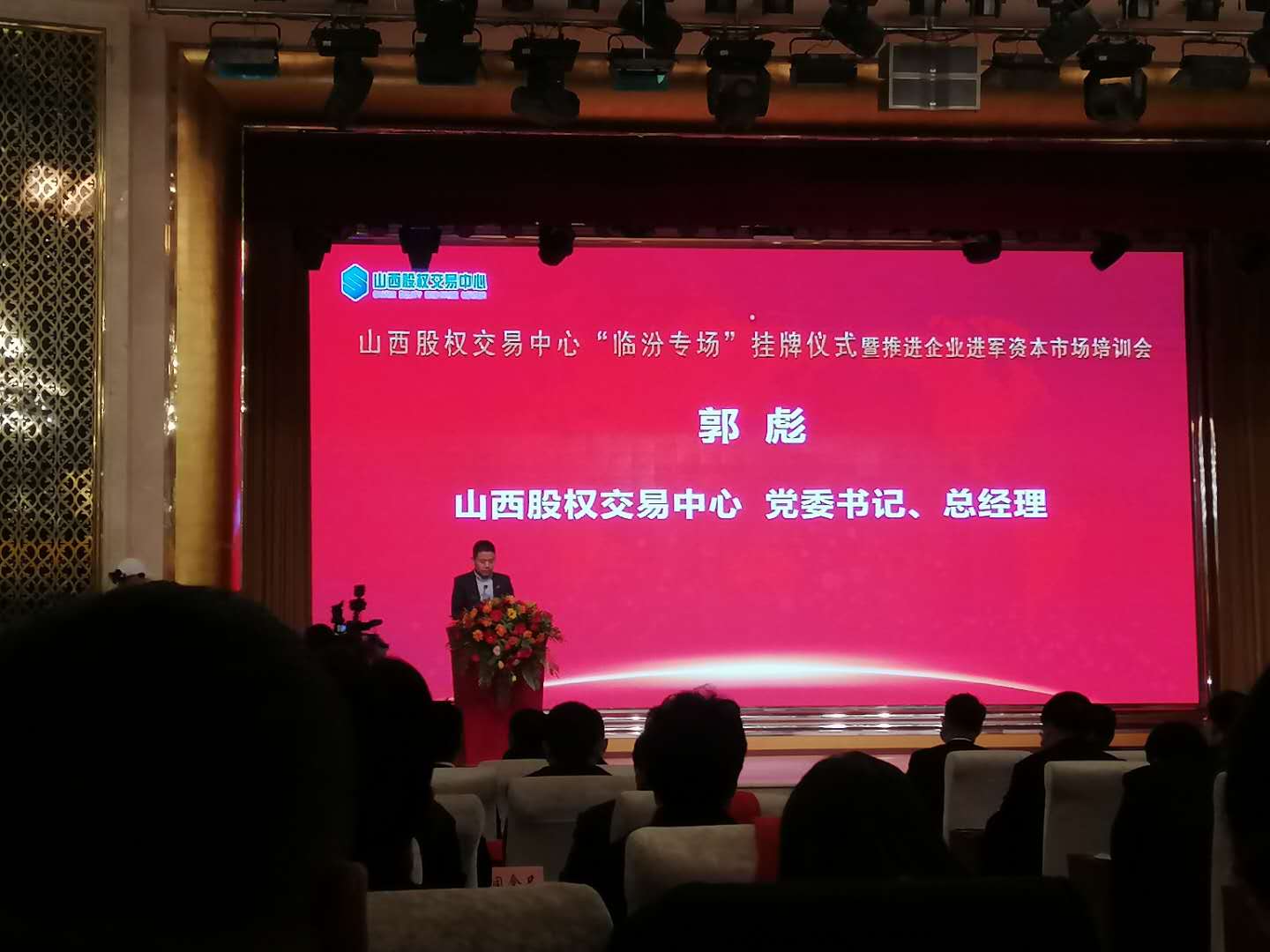 其間,臨汾市委常委、常務(wù)副市長常青發(fā)表賀辭,山西股權(quán)交易中心黨委書記、總經(jīng)理郭彪發(fā)表講話。